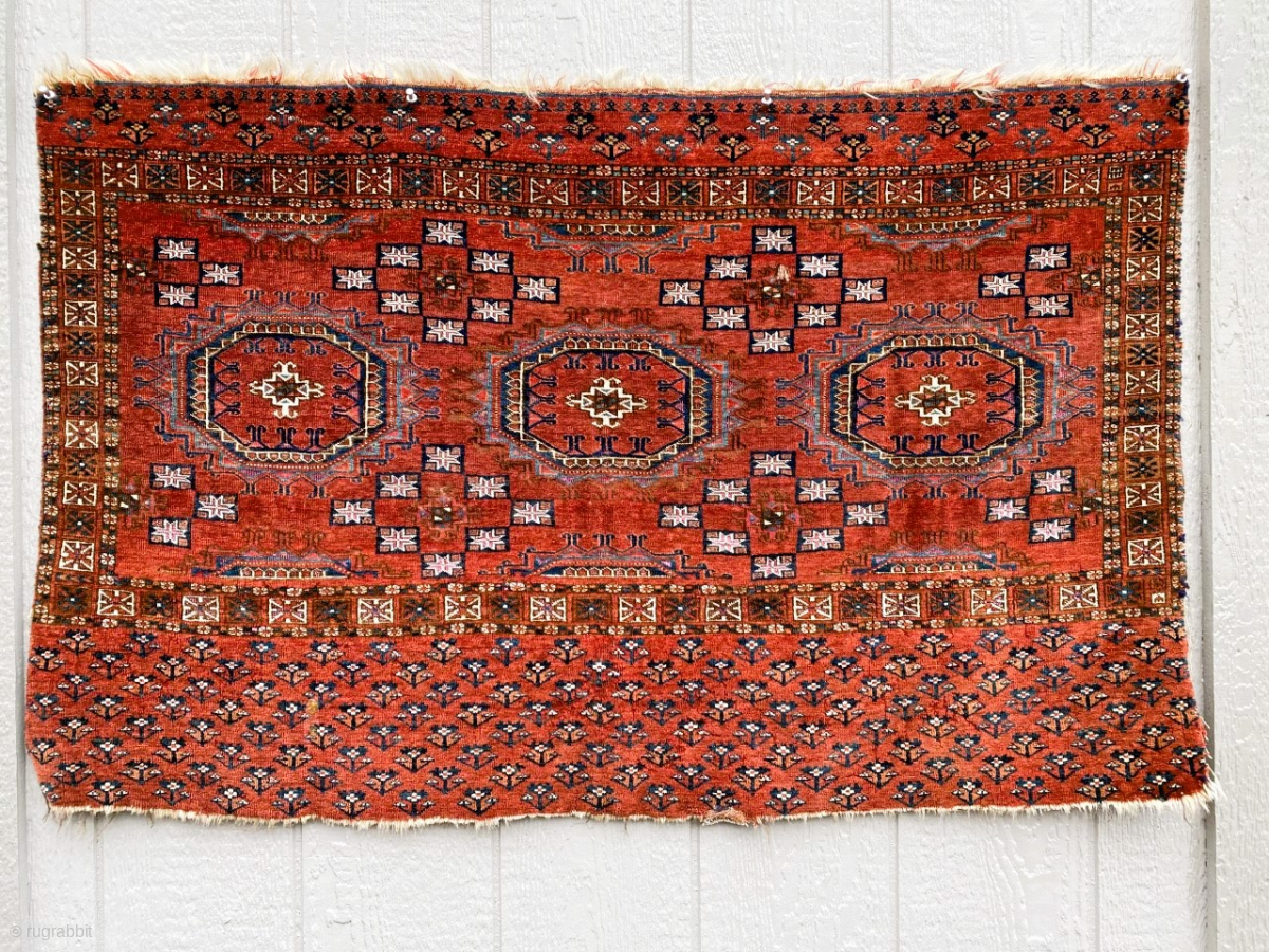Fine Tekke chuval,mid- 19th c. 46" x 28". Very finely knotted with light blue wool framing the guls. Very good pile and overall condition. Field color is darker/deeper than pictured. Please contact me directly at: rsorugs@hotmail.com