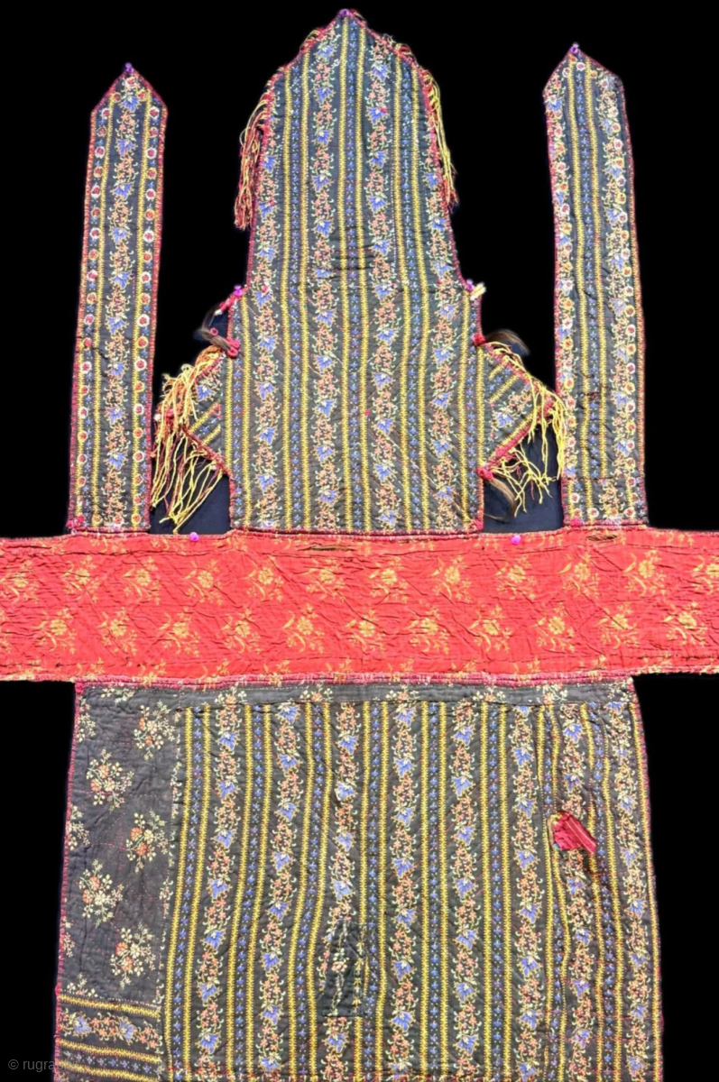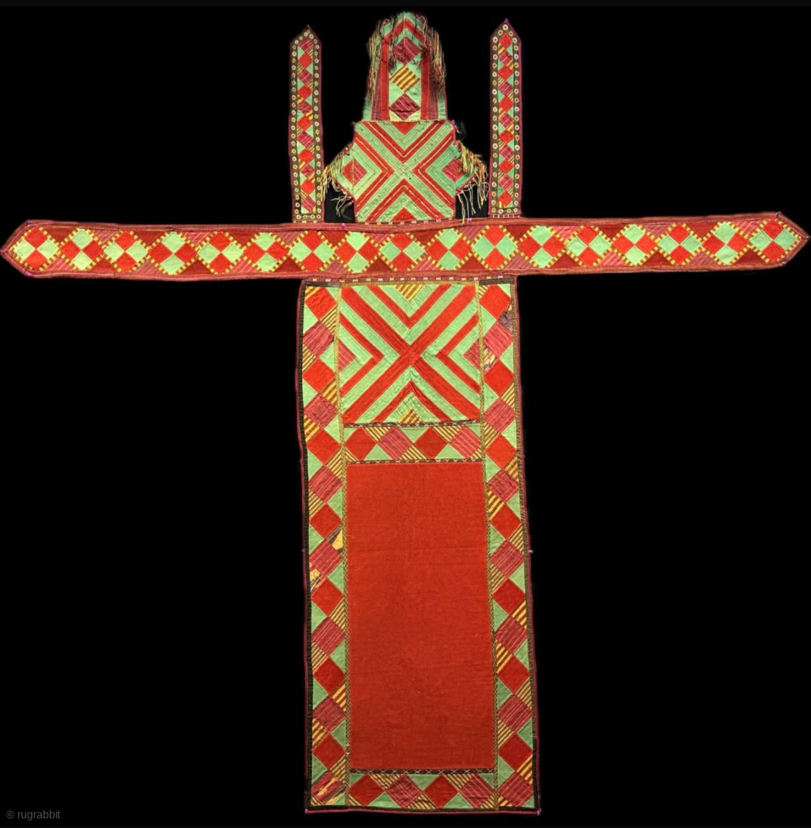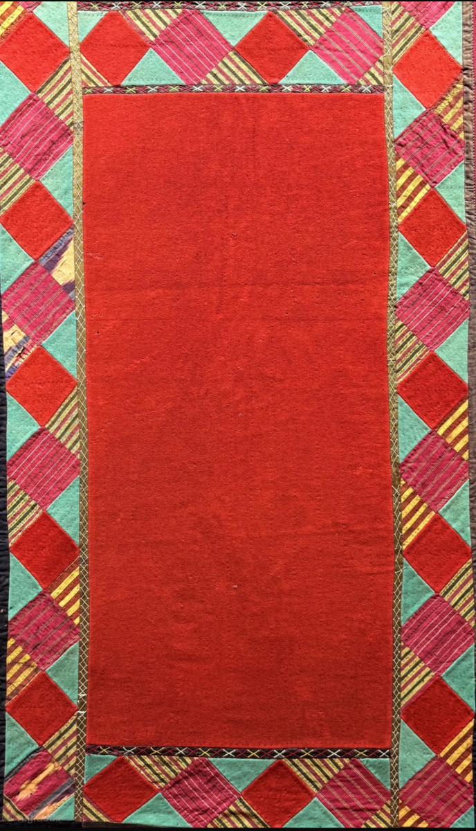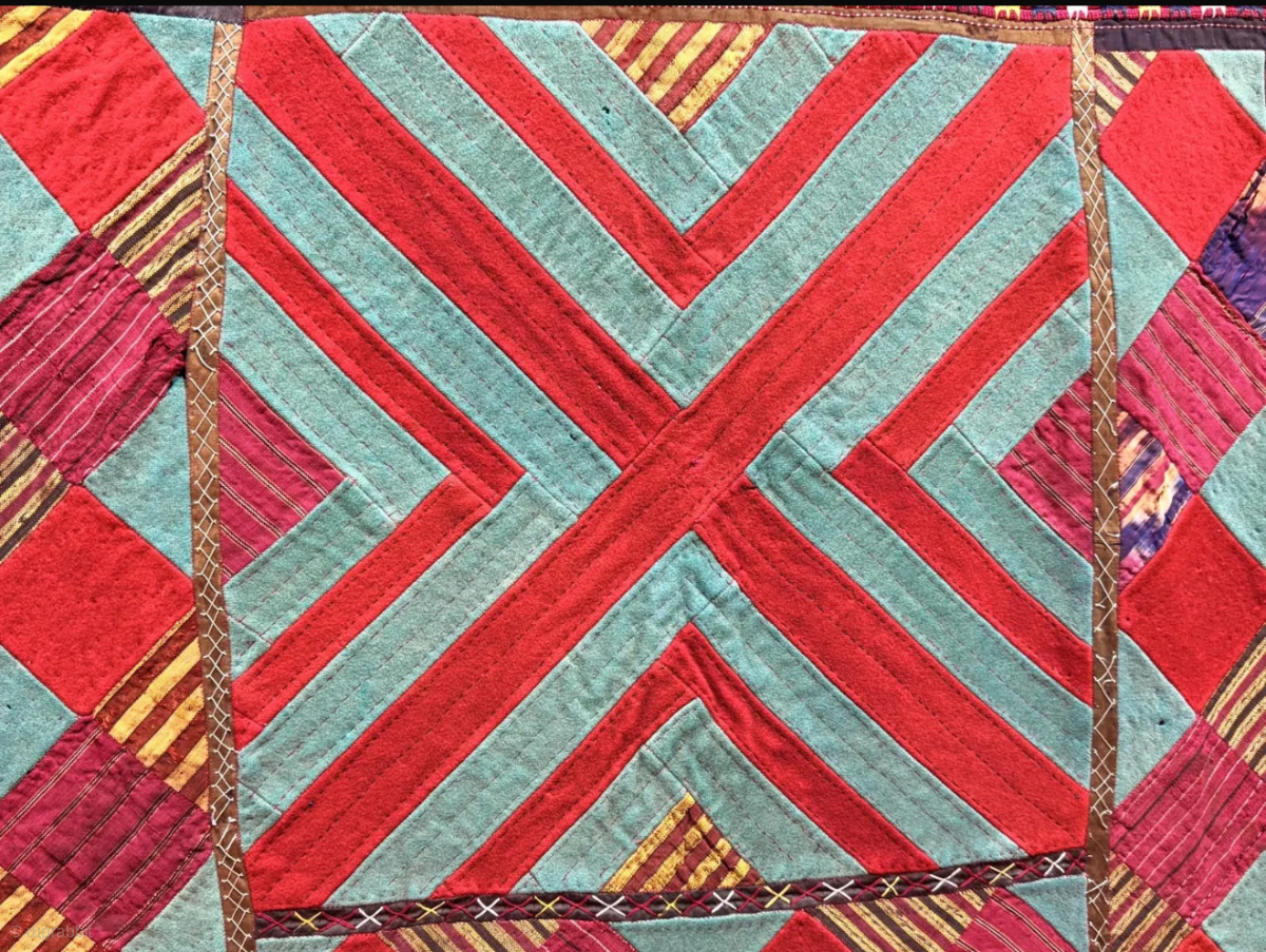 Antique Turkmenistan - Ersary ceremonial camel wedding fragment. Broad cloth patchwork with silk fabric. İt has Russian printed cotton backing. İt is in good condition. Size : (82.5'' x 82.5'') - (''210 cm x 210 cm''). turkmansilver@gmail.com