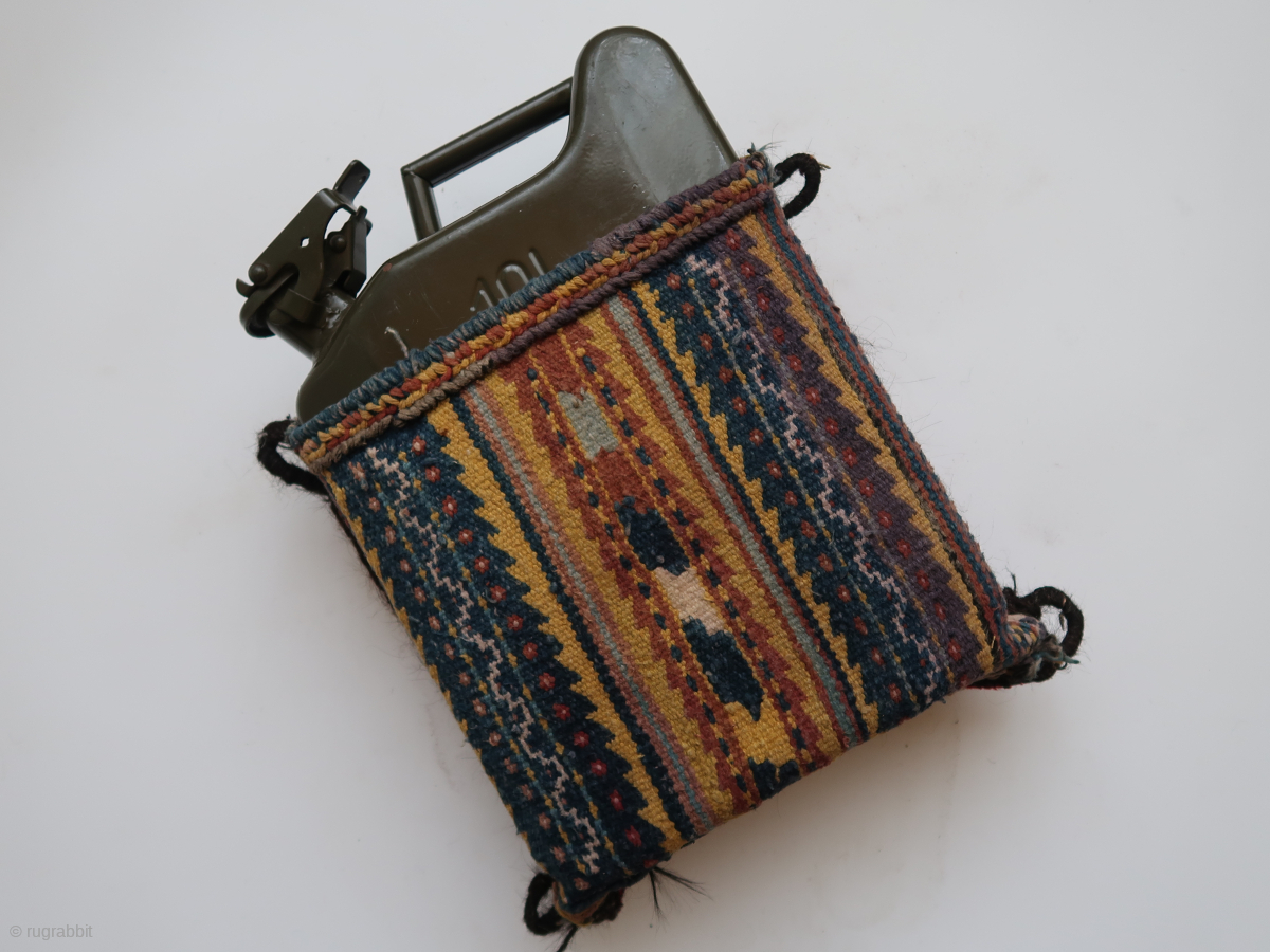 Mafrash/Bag, ? Fragment ? Origin unknown. ca: 29 cm . x 29 cm . x 14 cm . Wool, cotton, hair. Jerrycan not (!) included. 45,oo euro ex transportcosts. Listening : Deep Purple " Burn " .