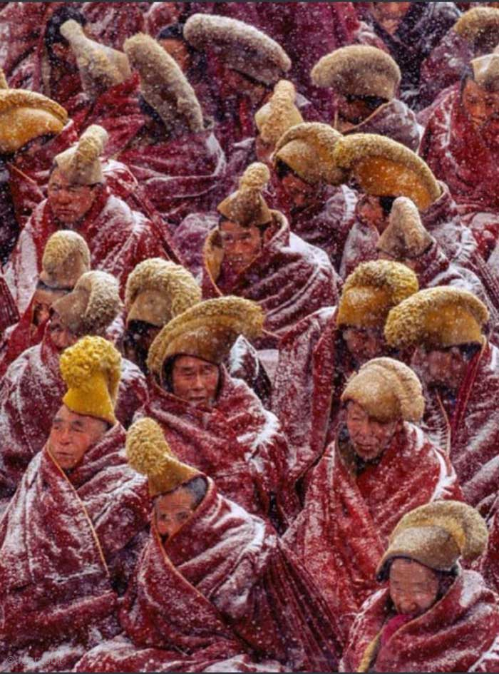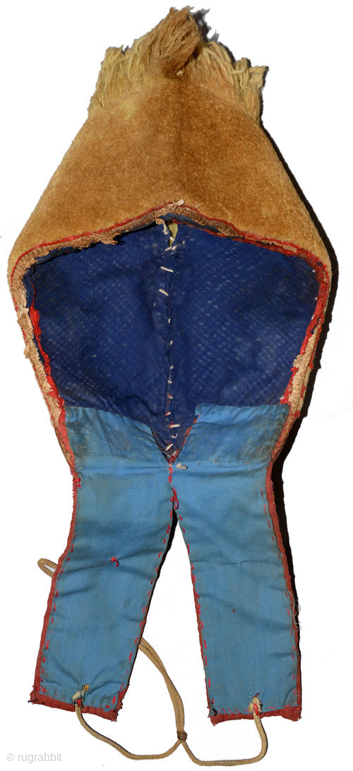 Crescent shaped pile-woven yellow Tibetan 'hat' which denotes monks of the Gelugpa sect, and worn during religious ceremonies. (The Dalai Lama, who holds the highest position in the Gelugpa sect, is considered its spiritual leader.) Made sometime in the first half of the 19th century / 1900's it is woven with a thick woolen pile and is knotted with the Tibetan knot (the same knot as used Tibetan carpets), has wool warp and weft and is dyed with a natural yellow dye.The overall length is 55cm, while the pile section including fringe is 35cm x 18cm (approximately 22in, 14in x 7in). See more photos here https://warpandweft.club/portfolio-item/other-tibetan-carpets-item-9/