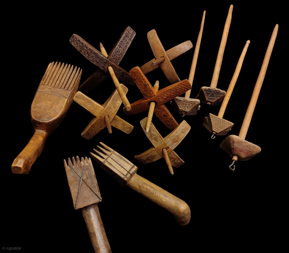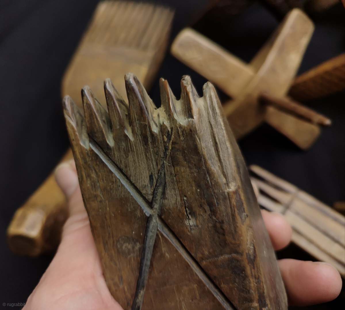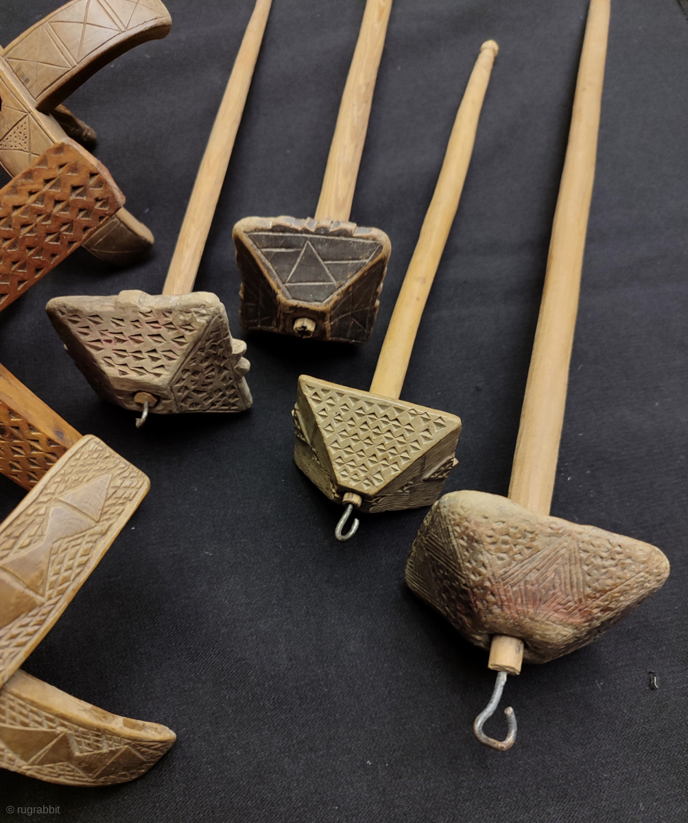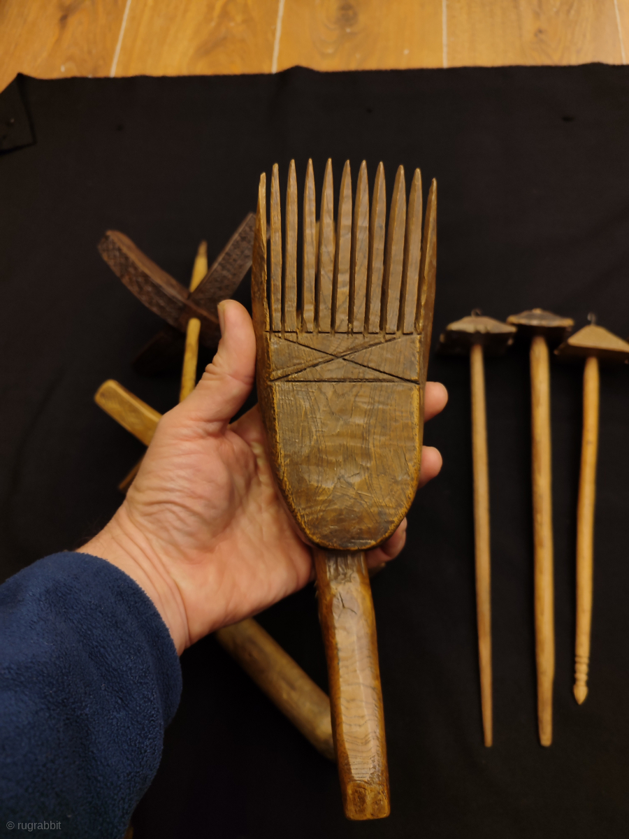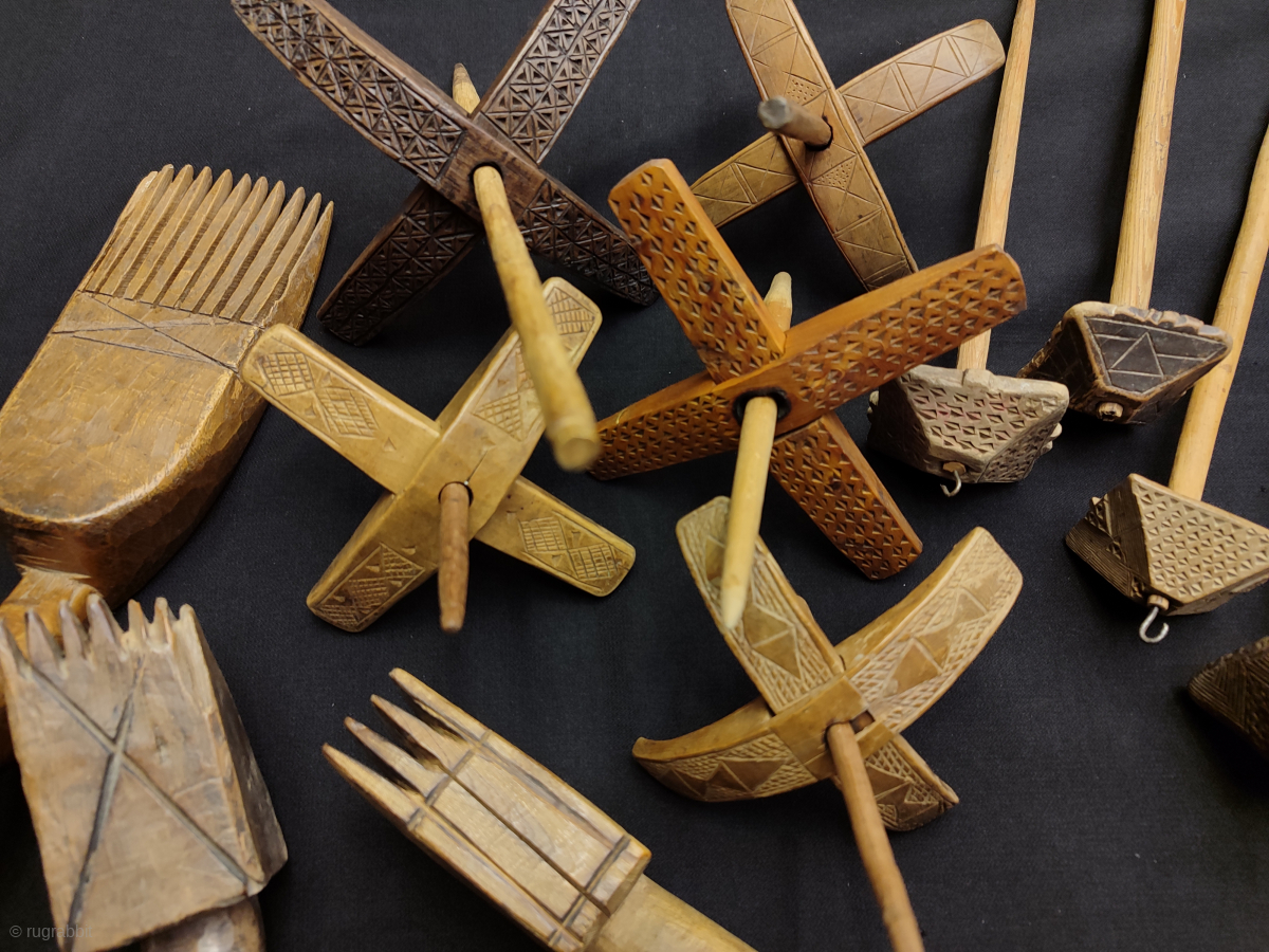 Antique Anatolian Wood spindle and comb collection.