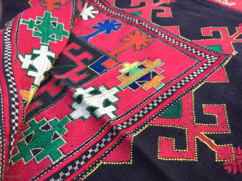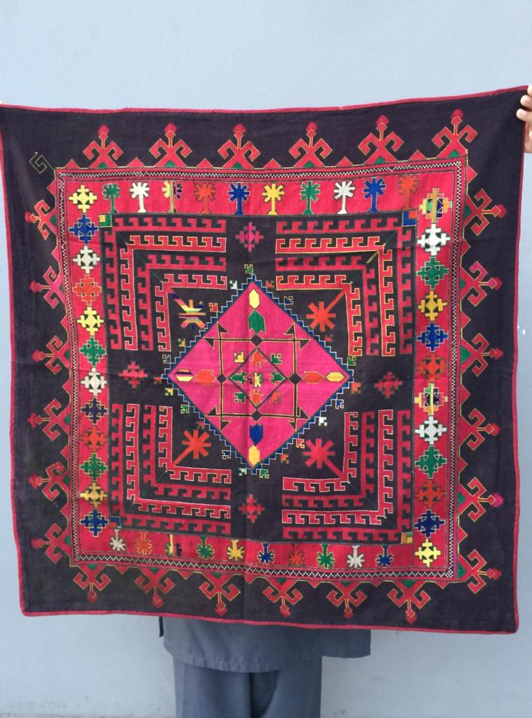 a very fine silk thread hand embroidered table cloth / wall hang from Swat valley of Pakistan. In excellent condition.