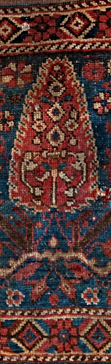 Origin Unknown, . Wool on wool, some latex on the backside ( white.) Ca; 65 x 60 cm . a tree or shrubbery ? Not sure. Border with lozenges. Lots of blues. 90.euro s ex transport costs. Listening ; Gin Wigmore - Black Sheep