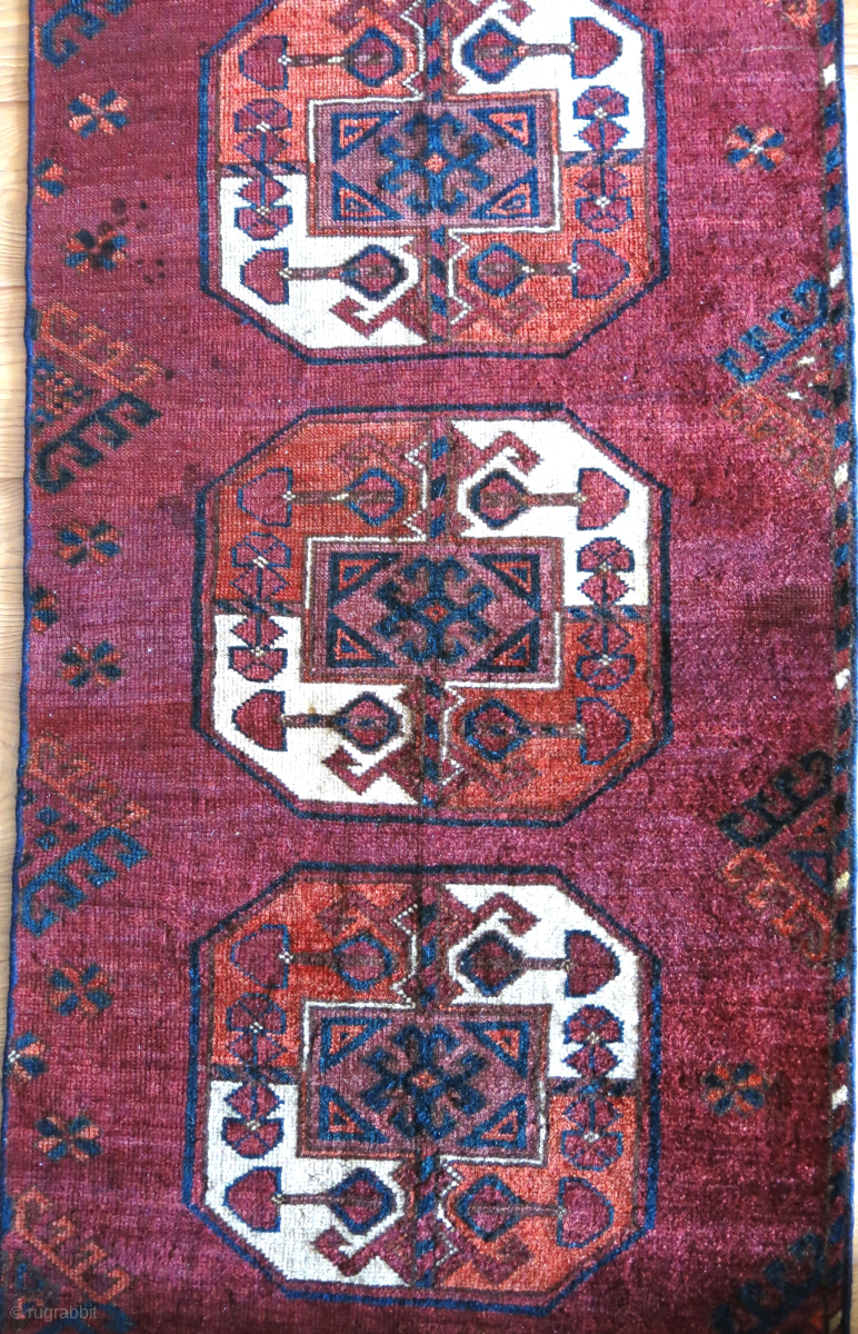Amudarya Lebap Turkmen fragment rug. 73" x 26" -185 cm x 67 cm Sides secured by wrapping. vedatkaradag@gmail.com
