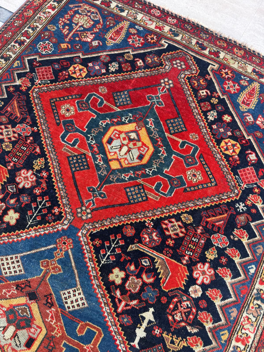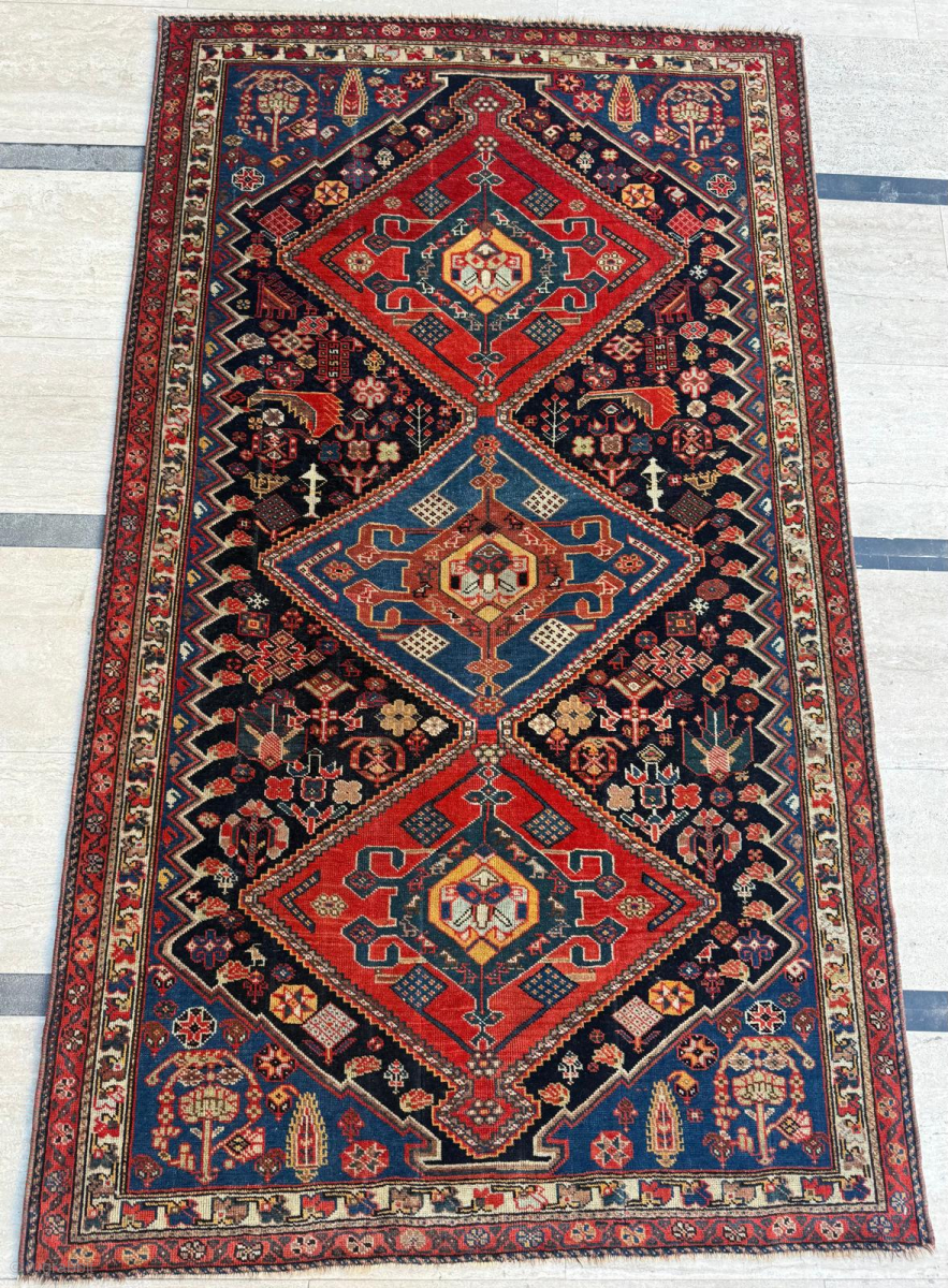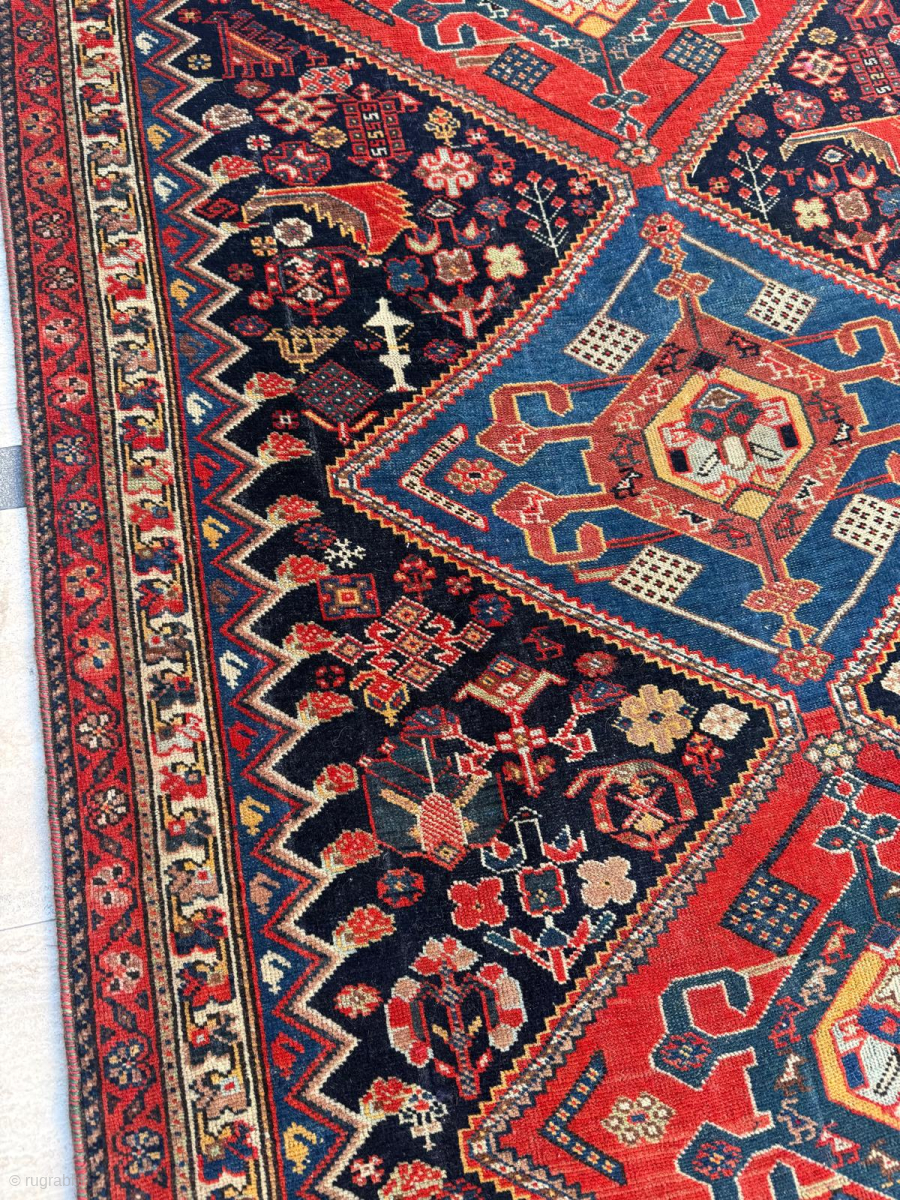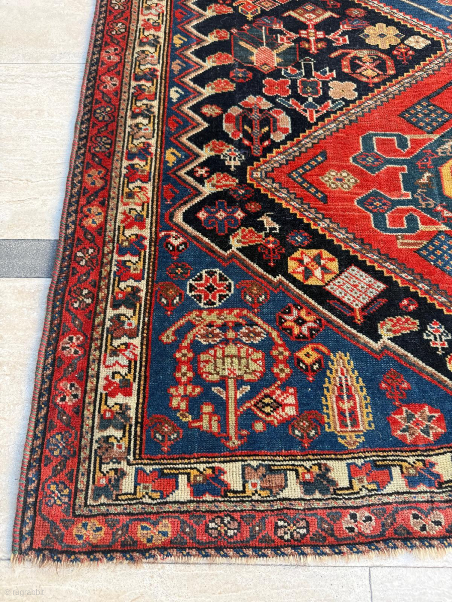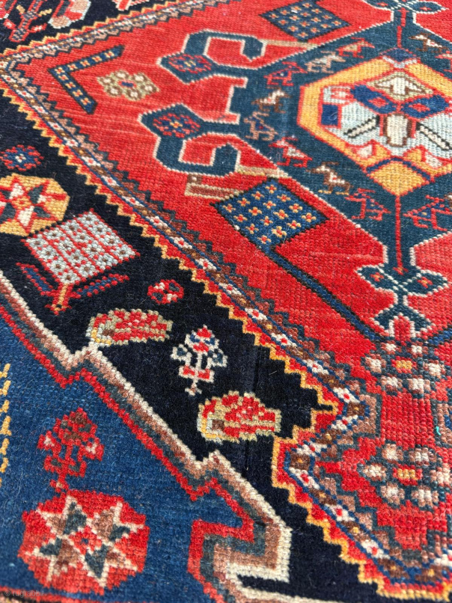 Late 19th century Persian Khamseh Rug. Good condition. Size 102 x 178 cm. Please send me direct mail.