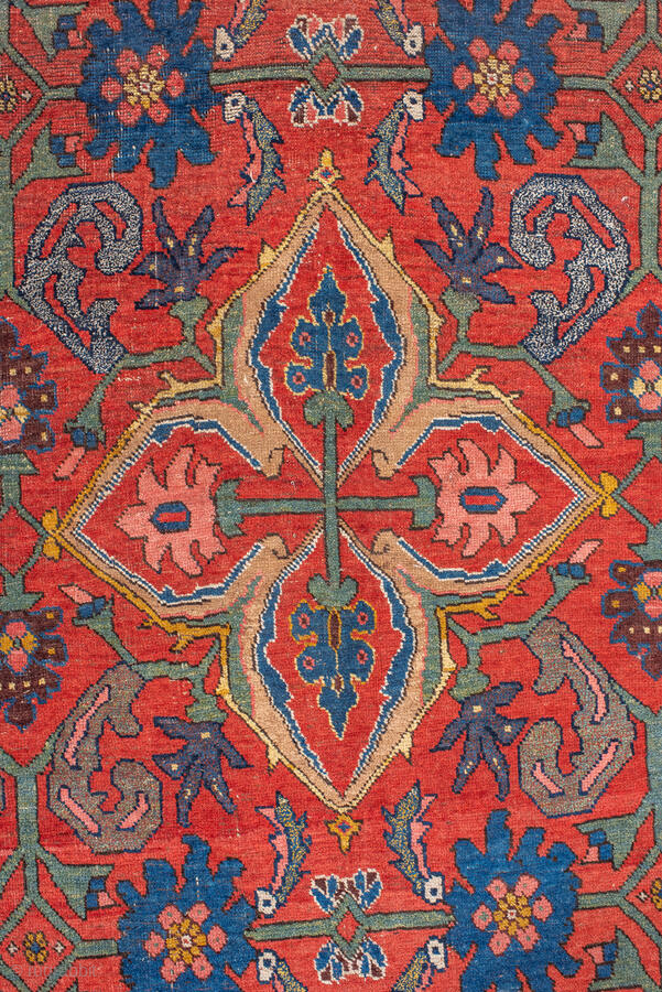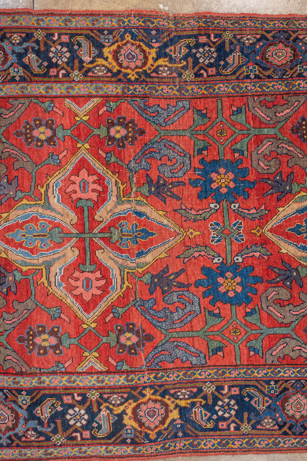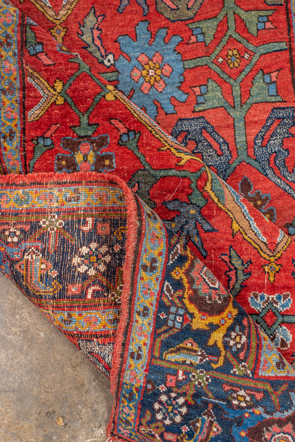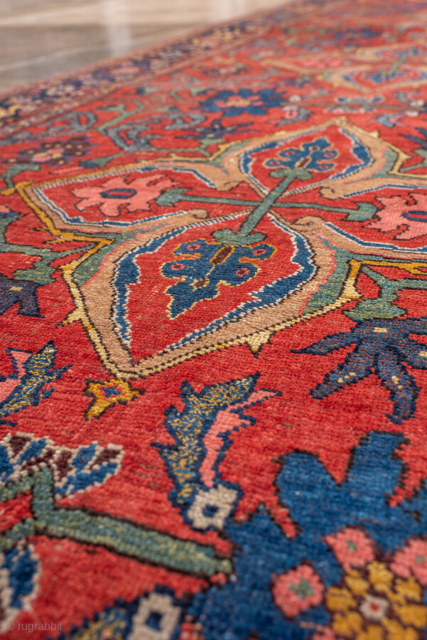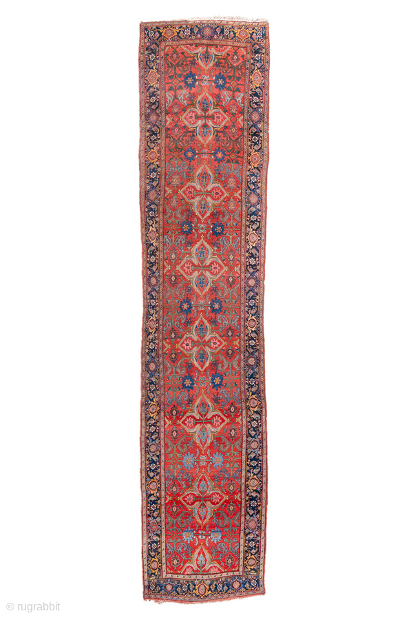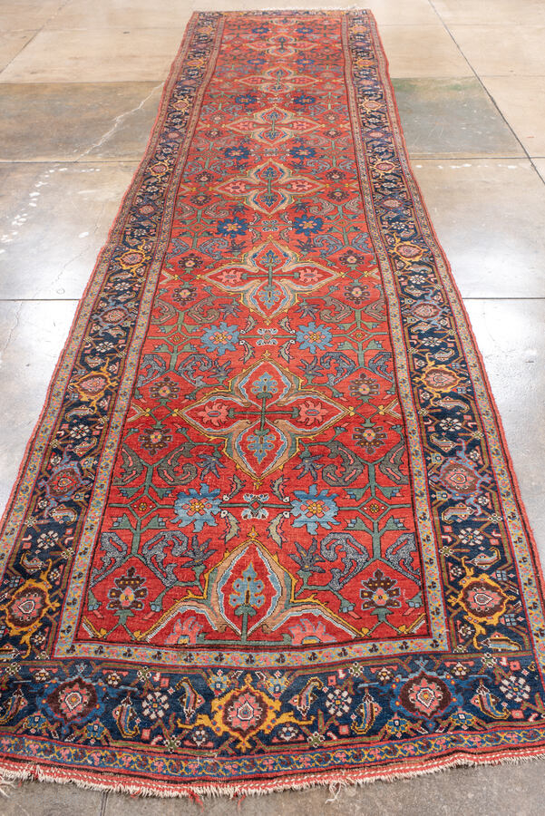 Antique Persian Bidjar Runner, circa 1900. Featuring an elegant repeating medallion design on a rich red field with deep indigo and ivory accents, framed by a classic floral border. Dense, durable weave with refined Northwest Persian character.