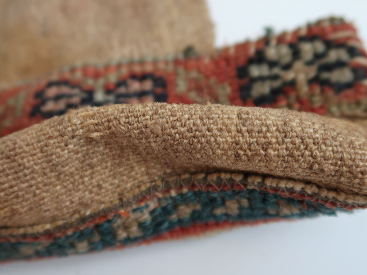 Fragmented bag, Origin Unknown. . Ca : 19,5 cm x 20,5 cm . wool, cotton, hole.