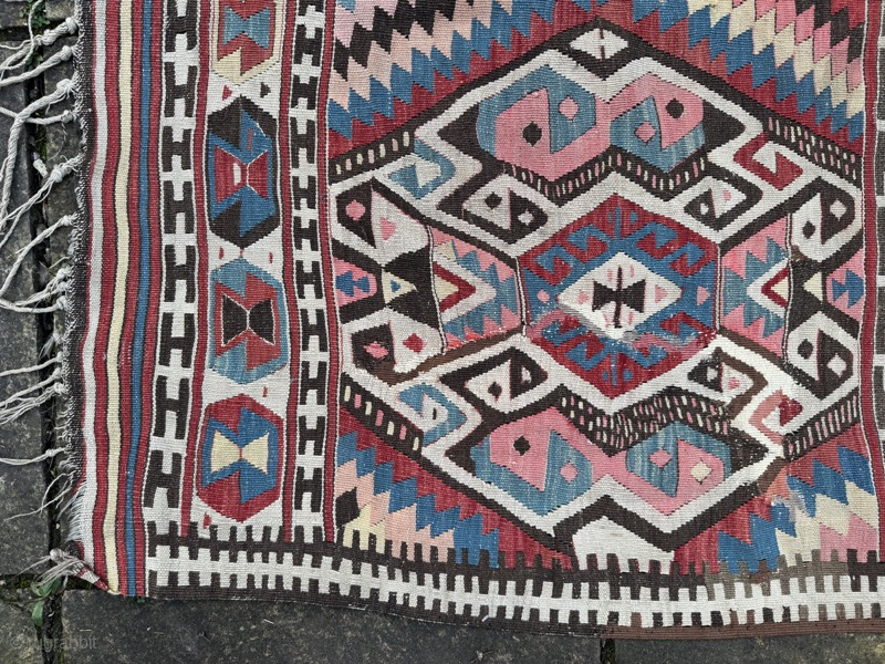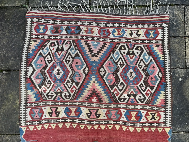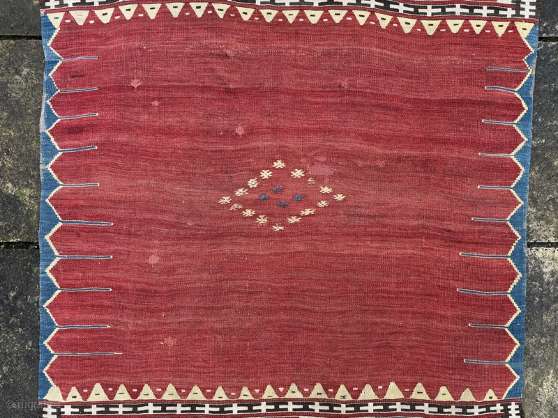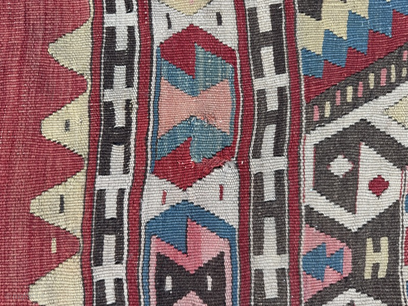 Large antique dowry kelim, from Fetiye, woven to cover the bride's camel. Good condition, note old repair (pictured)