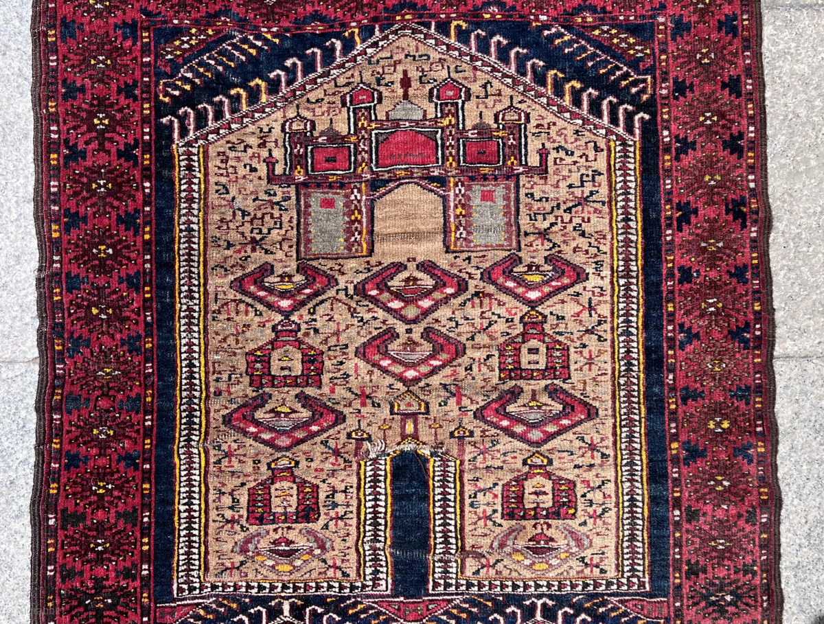 Antique Baluch Prayer Rug Size 112x082 Cm
