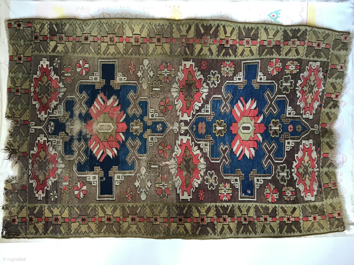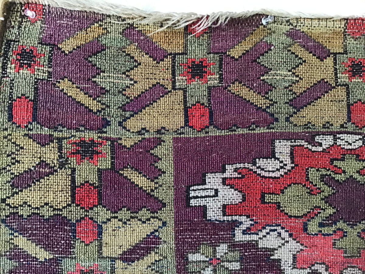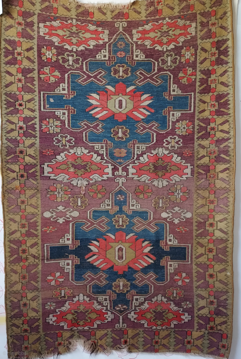 Antique Ada Milas rug with unusual design, faded fuchsine and end gouge. usd 325.- johnbatki@gmail.com