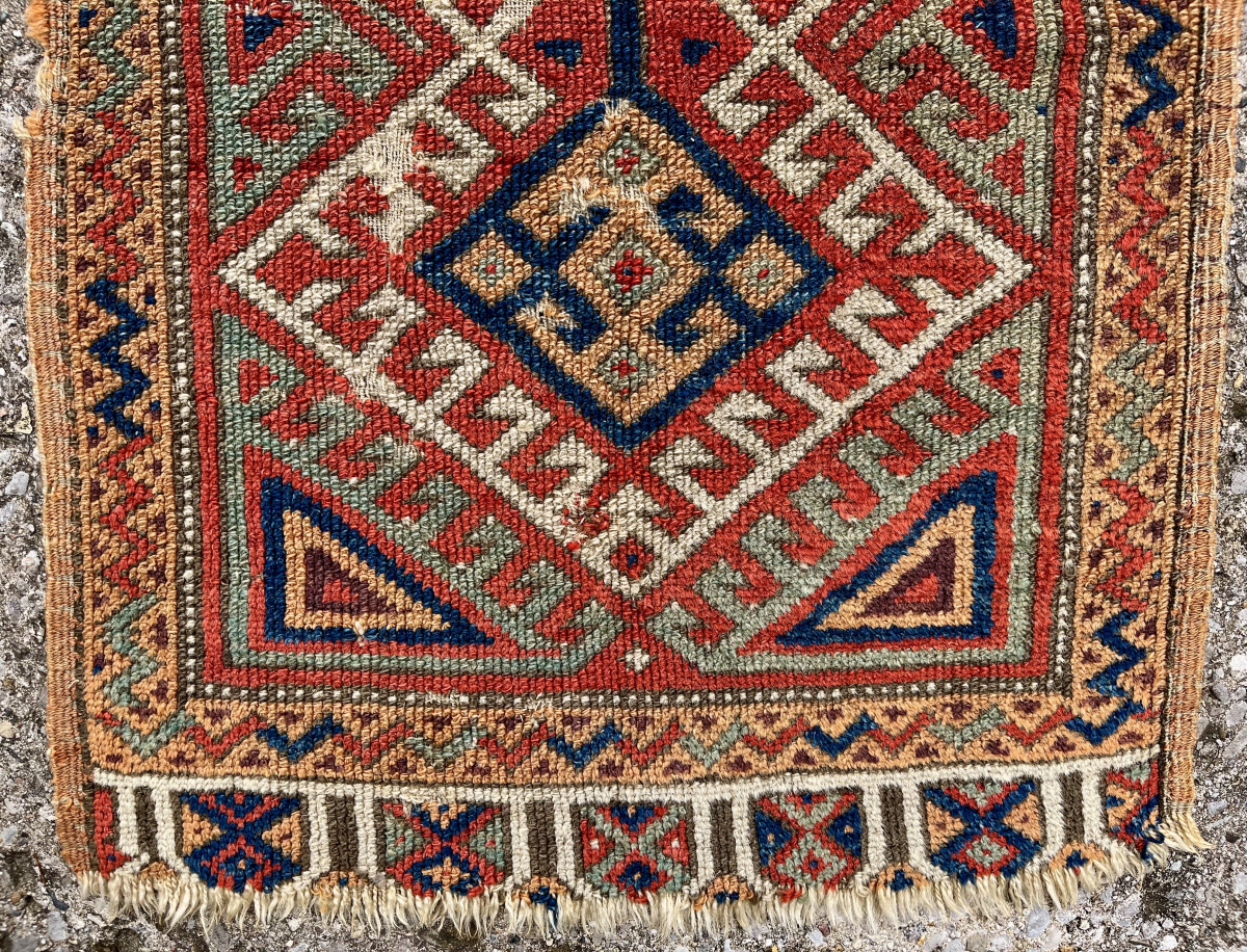 Central Anatolian Yastik. 22"x 33". 3rd quarter 19th c. All original including selvedges. Very refined drawing. a masterpiece. Lovely old handle. Email: patrickpouler@gmail.com