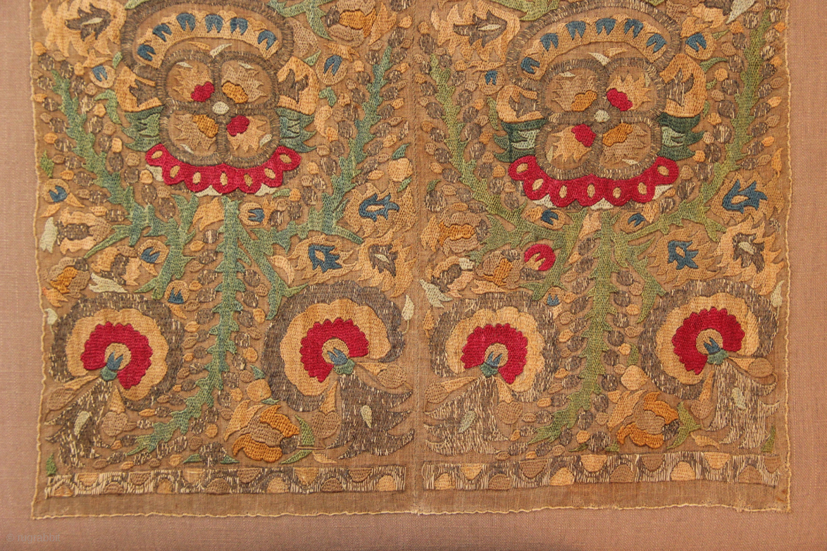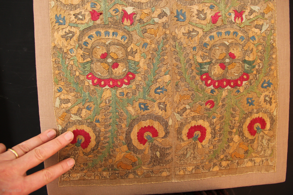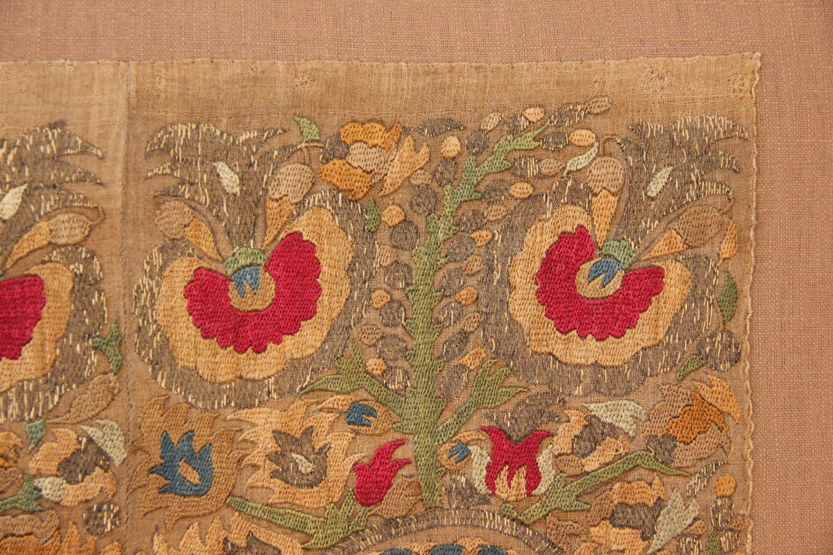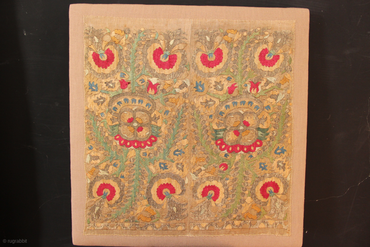 18th century Epirus embroidery, mounted. Frame measures 42 x 43cm / 1'5" x 1'5"