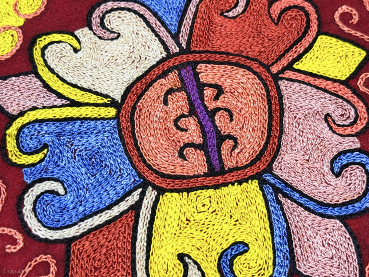 Uzbekistan Lakai silk embroidered mini bag. İt is fine chain stithed embroidery on wool. Size : (8.5'' x 21.5 cm'') x (7'' x 17.5 cm''). turkmansilver@gmail.com.