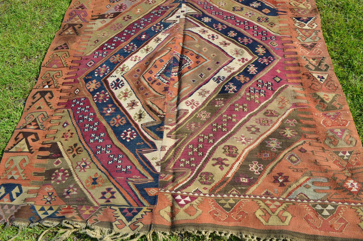 Large Kilim, good age, great colors, great wear.  12' 3" x 5' 2 1/2"