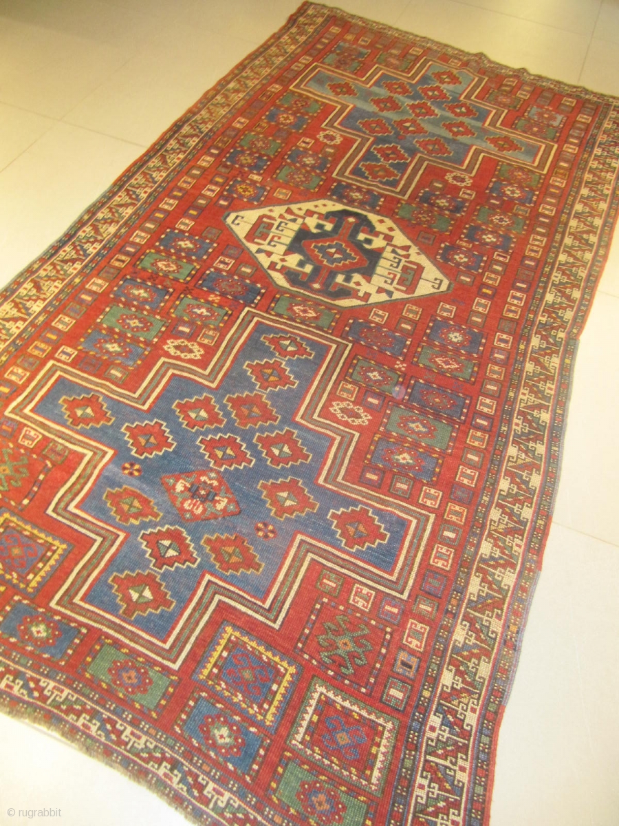 d) Kazak lori pampak Caucasian rug, 19th century, perfect condition