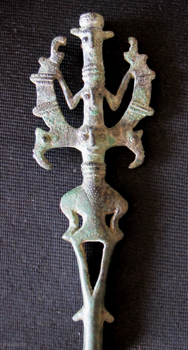 Luristan Bronze standard finial with 'Master of the Beasts' imagery. circa 8th cen bce. 19cm/ 7.5"