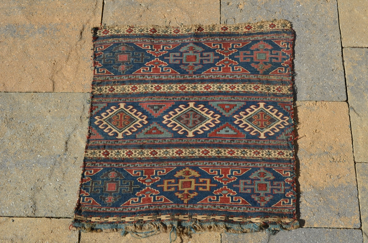 a beautiful early Shahsevan bag face. Needs a good cleaning. Measures 20" x 19 1/2"