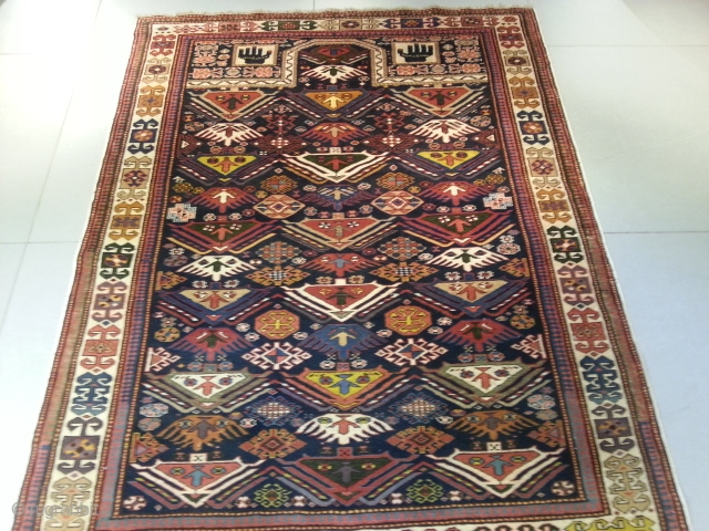 ref: s2165 / kuba Akstafa Prayer, Caucasian antique rug, 19th century, perfect condition
