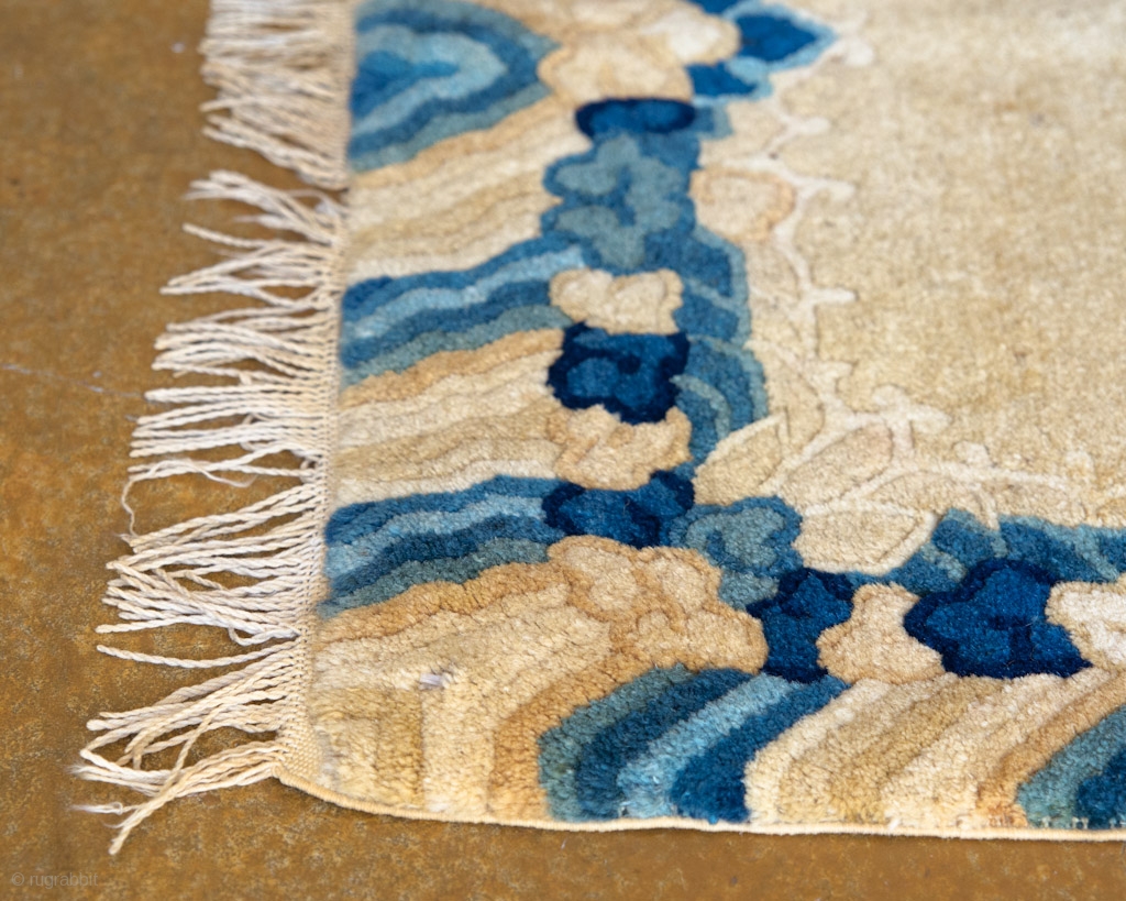 Antique Tibetan seat cover. This gorgeous seat cover features rainy skies and very soft, hand-spun natural wool.