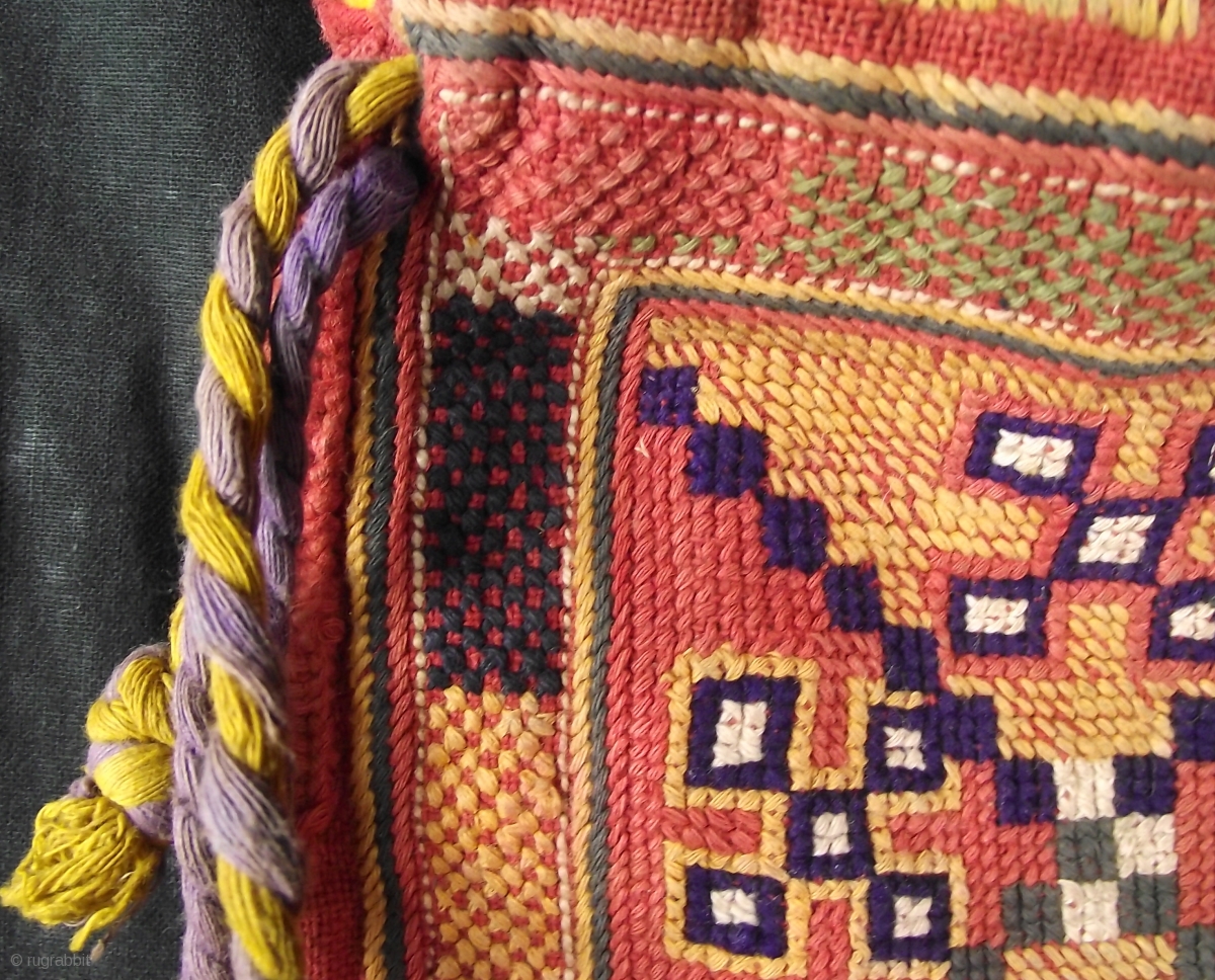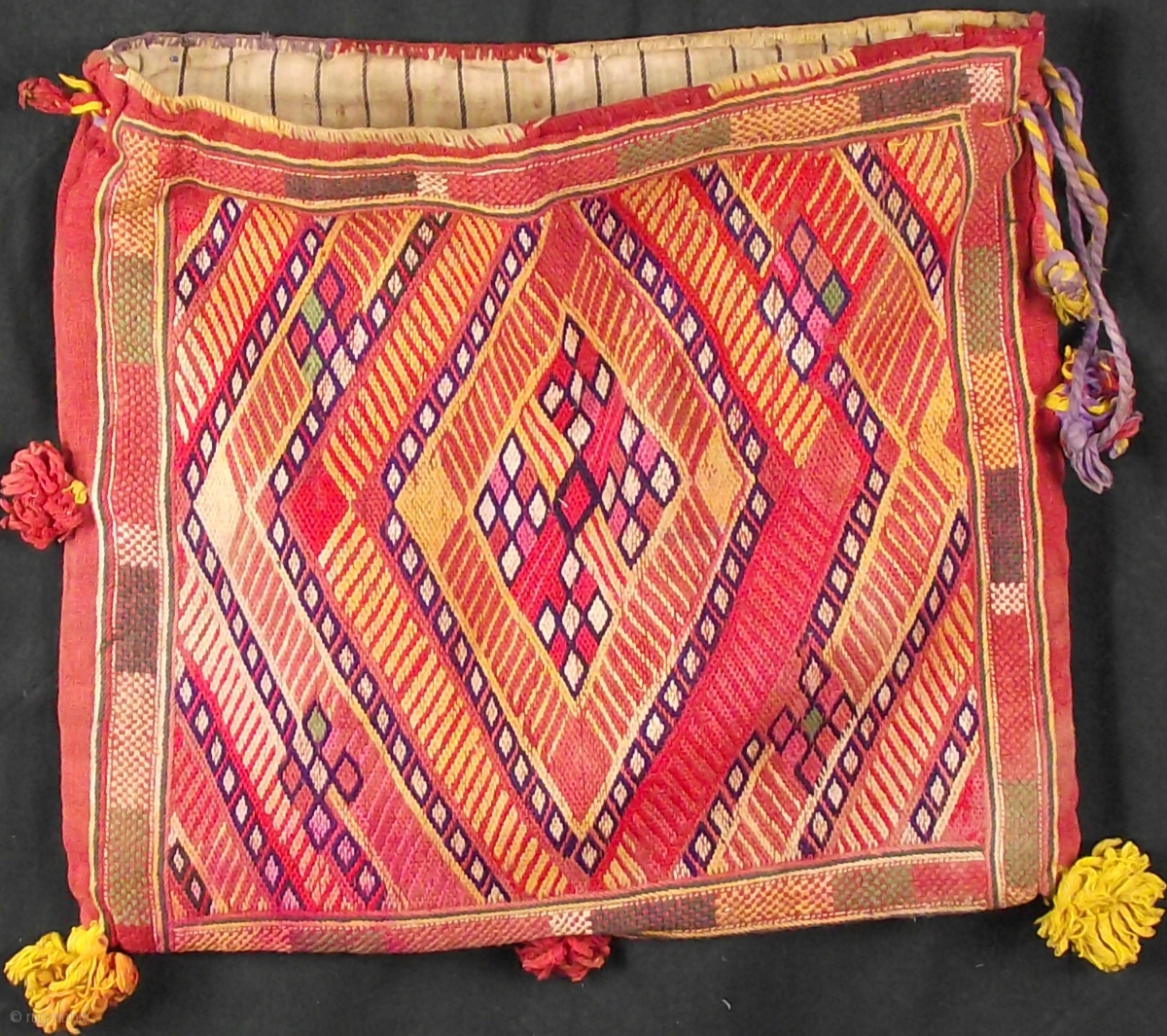 Checkered five point pan Banjara motif dowry bag, with draw string.