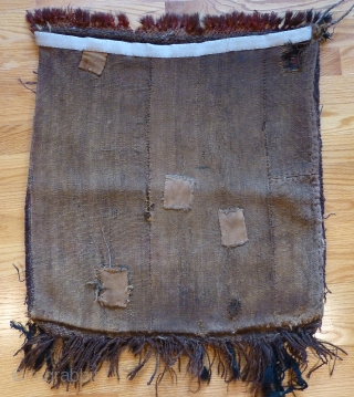 Old Kirghiz bag, with back. 24 x 22 inches. Good thick pile. Red knotted fringe at one end was added later. Interesting Central Asian bag. Velcro hanging strip sewn to back, which can be easily removed. See more at www.banjaratextiles.com