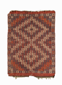 • Period: Mid 19th Century Origin: Turkmenistan Dimensions: 90 x 118 cm This rare mid 19th century Yomud chuval highlights a powerful and rhythmic geometric composition ... read more
