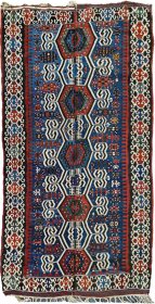 • Antique Baluch (Timuri? Salor Khani?) small 5-medallion rug, 38 x 74 inches, very good condition. Second medallion from top contains a Vajra-like ... read more