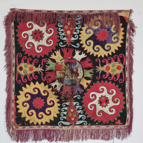 • An exceptionally fine and rare antique needlepoint embroidered textile made by the famous Lakai tribe of Uzbekistan circa 1880-1890 period, named Aina ... read more