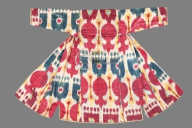 • Silk ikat chapan (men's coat) from Uzbekistan, 19th century.