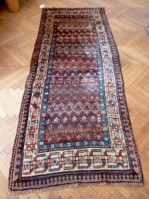 • a vibrant Karabagh Kazak, late 19th Century. 258 x 110 cm. The ends are rewoven and there is some old repiling, but ... read more