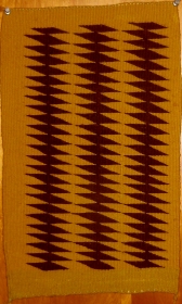 • Early 20th Century unusual small Navajo weaving, extremely graphic, with only two colors used. In pristine condition. 11" by 19". ... read more